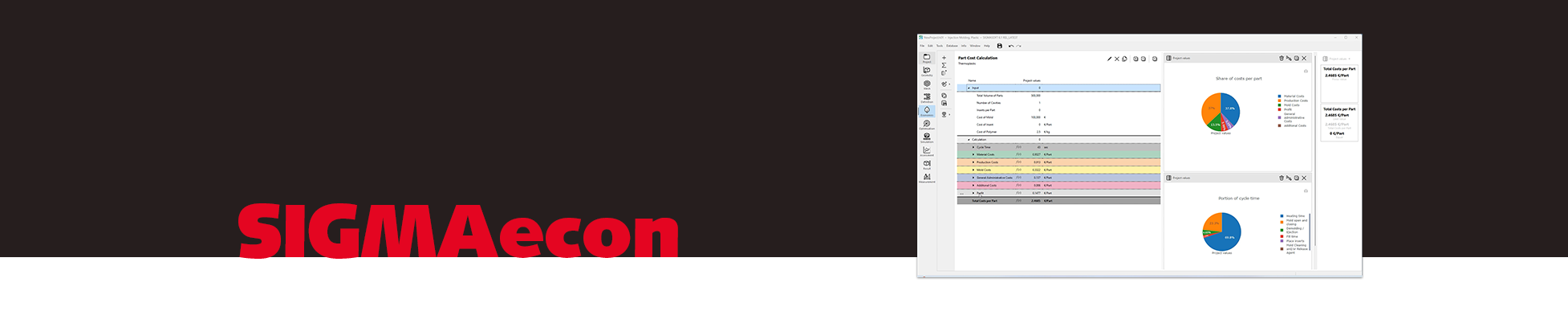 SIGMAecon va encore plus loin et permet à l'utilisateur de calculer précisément les coûts des composants du processus en cours de simulation et de ses variantes d'optimisation. Des concepts thermiques différents (par exemple l'utilisation d'une technique de canaux chauds ou froids ou d'une isolation supplémentaire) ne sont pas seulement considérés comme des coûts supplémentaires ou des économies de matériaux, mais aussi par rapport à l'énergie utilisée.